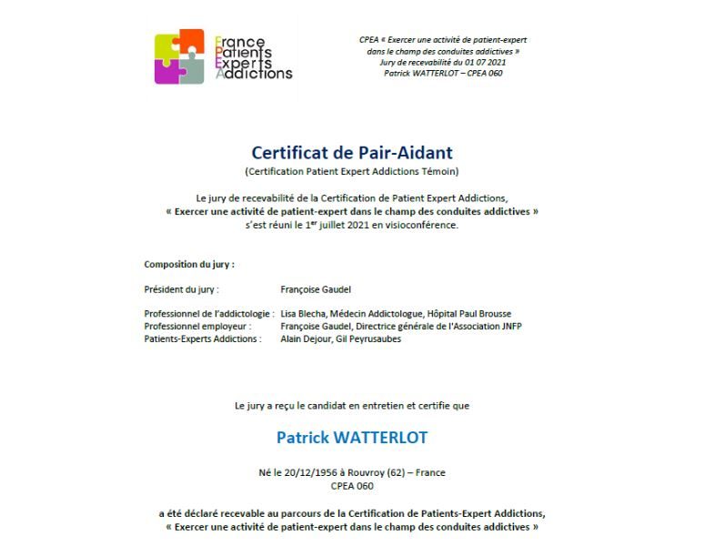 Les deux Co-Gérants sont notamment formés à IREMA (Institut de Recherche et d’Enseignement des Maladies Addictives) de Paris.